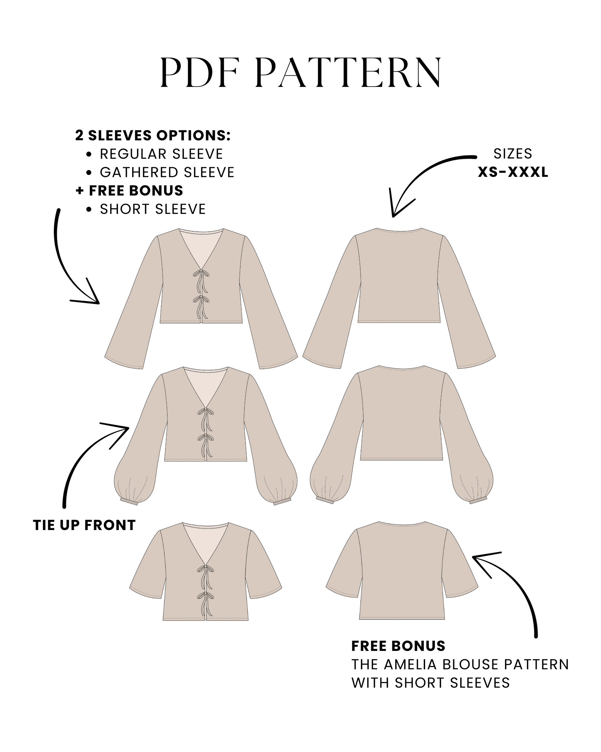 Free Bonus: The Amelia Blouse pattern with classic short sleeves.