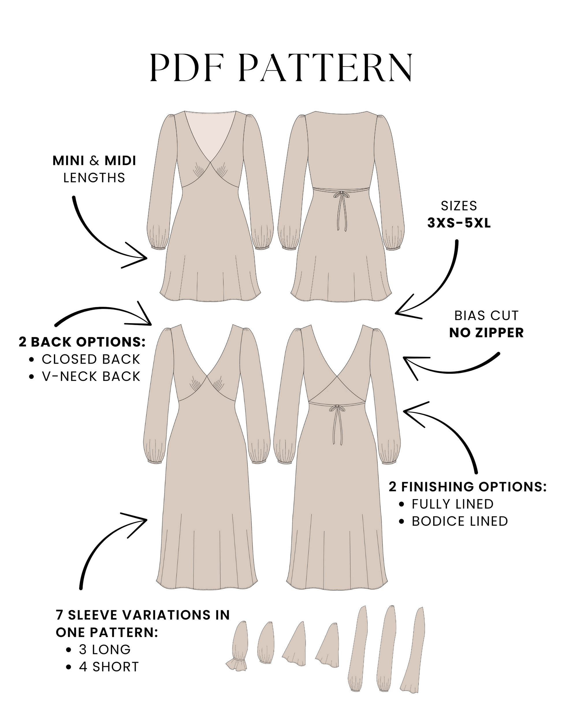 • Includes 2 finishing options: fully lined, or bodice lined.