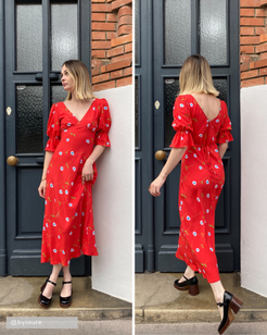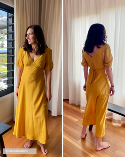 This is the digital PDF sewing pattern for the Lorraine Dress. Designed with a classic V-neckline and a flattering A-line silhouette, this dress is cut on the bias, giving it a naturally elegant drape and a comfortable fit without the need for a zipper. The gathering detail at the bust adds an elegant touch. The dress is designed with sleeves (for the sleeveless version, see the Laura Dress).