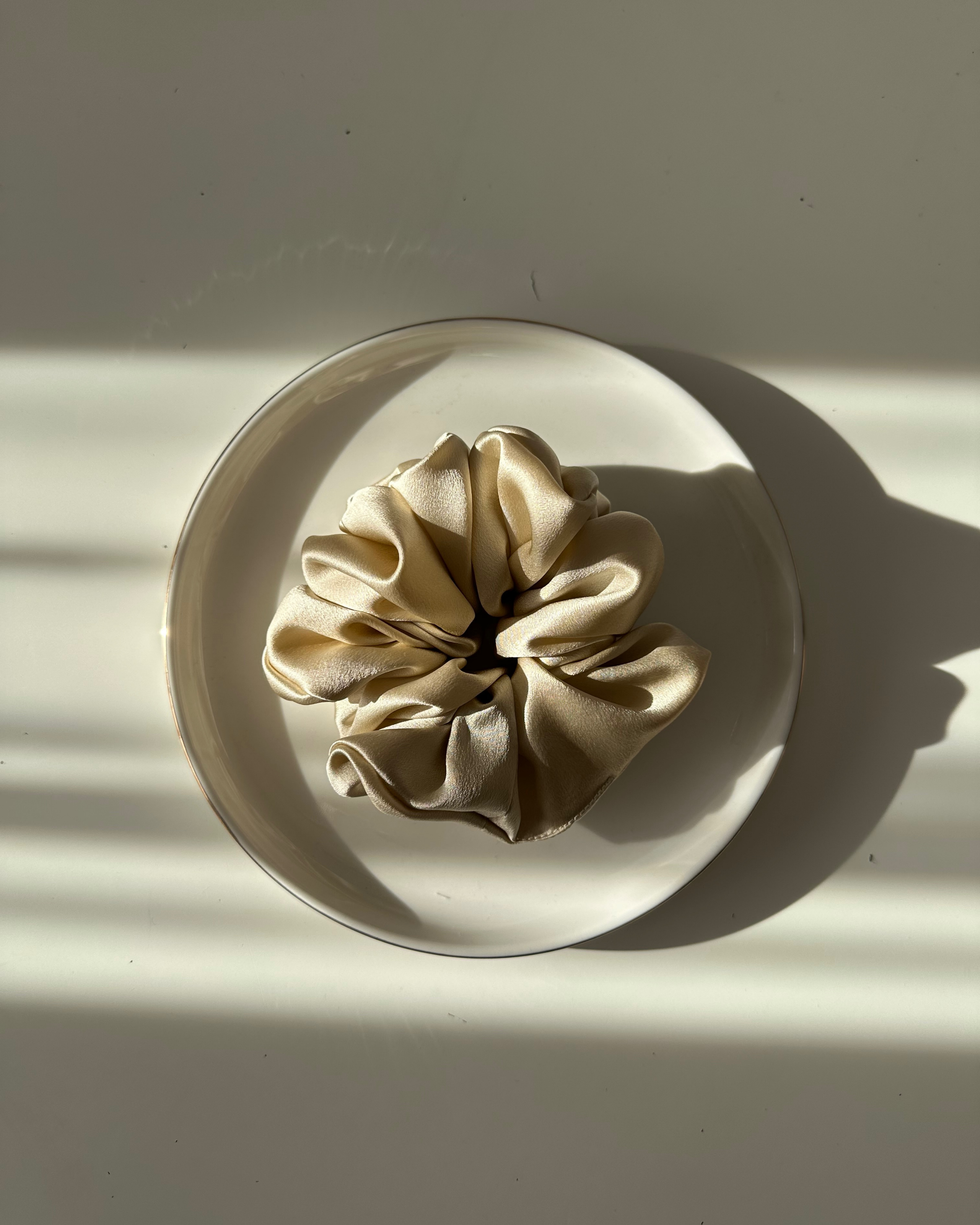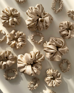 Silk scrunchie is crafted from the highest quality 100% natural mulberry silk, combining elegance with gentle hair care. The smooth silk texture protects hair from breakage, creases, and tangling, while the elastic interior ensures a secure, comfortable hold without pulling. The scrunchie gently wraps your hair, leaving it smooth, shiny, and well-groomed all day long.